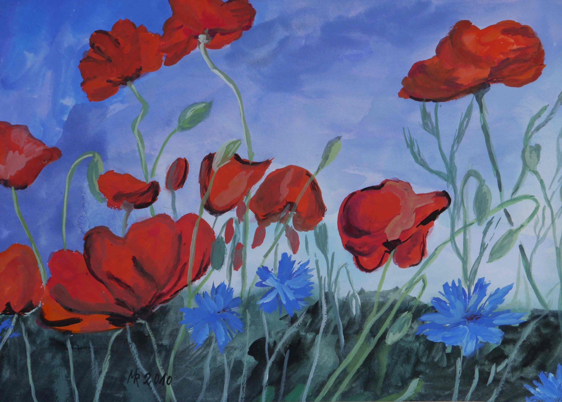 Mit Gouache, Aquarell und Tinte zaubert sie überraschende, spannungsgeladene Kompositionen, so dass der Betrachter immer wieder interessiert auf das nächste spektakuläre Gemälde wartet, das ihn erneut fesselt.